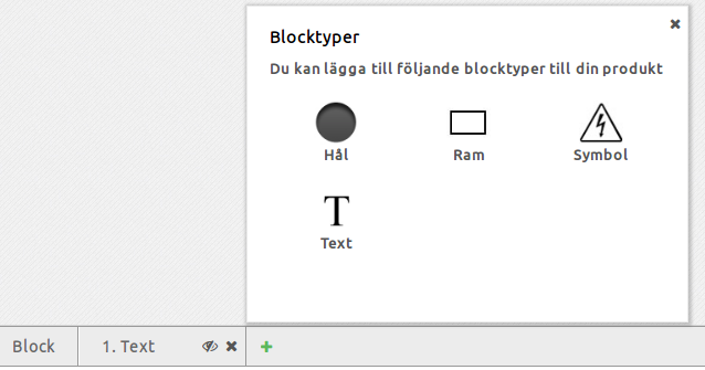 Dessa Hål, Symboler eller Ramar blir ett eget block som du kan se som en flik bredvid det gröna "+"-tecknet du klickade på.