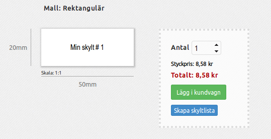 Har du vissa typer av skyltar eller vissa mått som är återkommande kan du spara dessa som mallar.